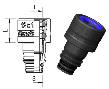 SKU: 90112016Overgang ABC Push-In Ø12x1,50 - M16x1,50 L=30mm