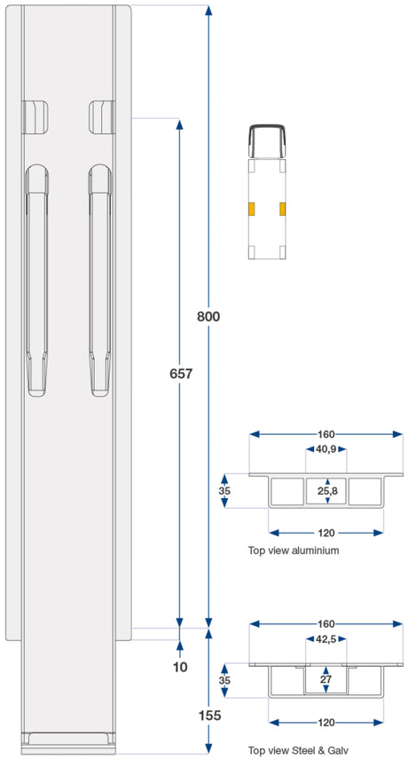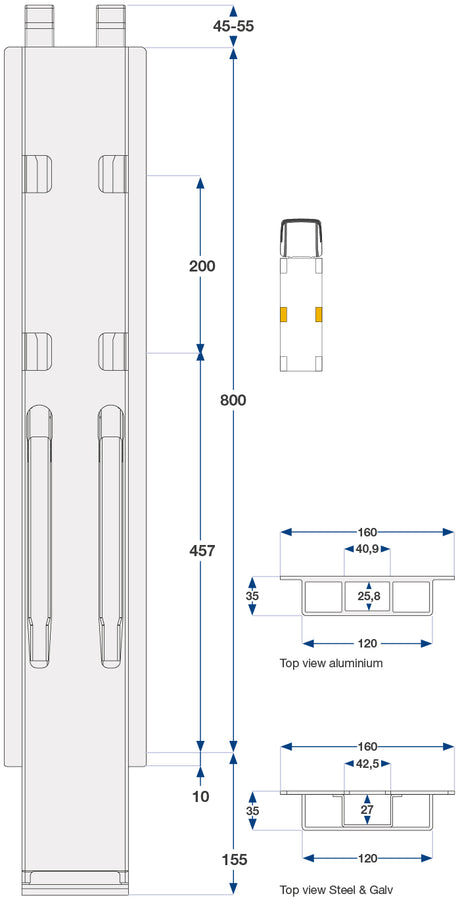 SKU: 20820280Cm Kinnegrip K20 Sidestolpe, Alu. 2-Port
