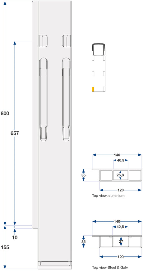 SKU: 20824280Cm Kinnegrip K20 Sidestolpe, Alu.