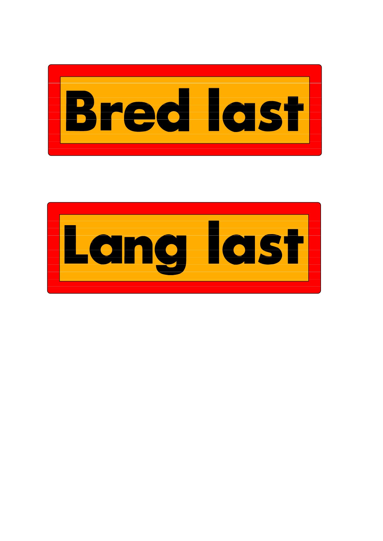 Skilt Bred last/Lang last 900x300mm Alu Gul bakgru